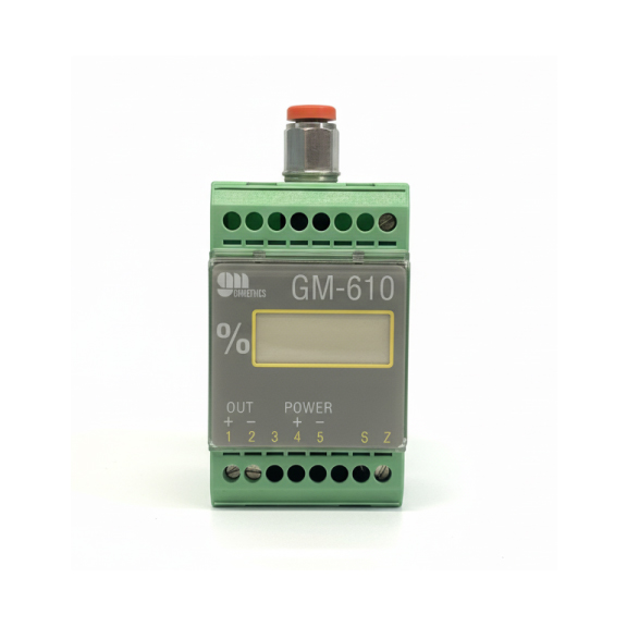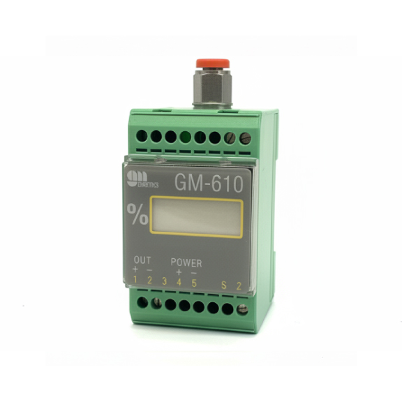 The GM-610 transmitter accepts a pressure signal and converts it to a 4-20 mA current signal.